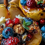 Baked Pears with Berries, Honey, Walnuts & Blue Cheese