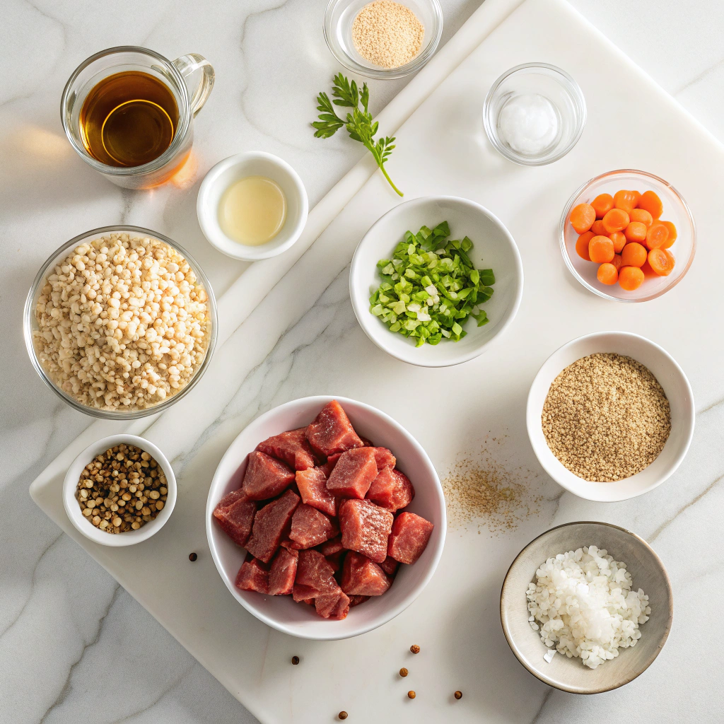 - 1.5 lbs beef stew meat – Look for well-marbled chuck roast or sirloin for the best flavor and tenderness.