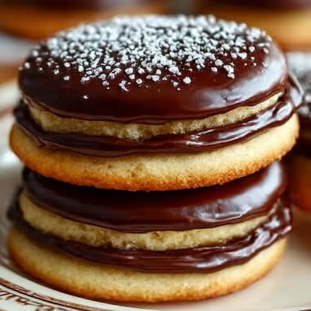 - Drizzle or dip the assembled cookies in the melted chocolate glaze, allowing any excess to drip off.