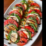 This Caprese Salad with Balsamic Glaze is best enjoyed immediately after assembly while the tomatoes are firm and the basil is crisp. If you must prepare it slightly ahead, layer the components, cover, and refrigerate, but add the salt, oil, and glaze right before serving to preserve perfect texture and flavor.