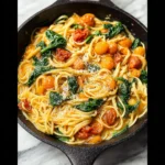 This Garlic Butter Pasta with Tomatoes and Spinach proves that a truly luxurious, cohesive sauce doesn’t require heavy cream or hours of simmering—just a mastery of simple techniques. For another quick, cheesy vegetable bake, try this Ricotta Eggplant Casserole Recipe. I hope this becomes your new favorite weeknight solution; share your results in the comments!
