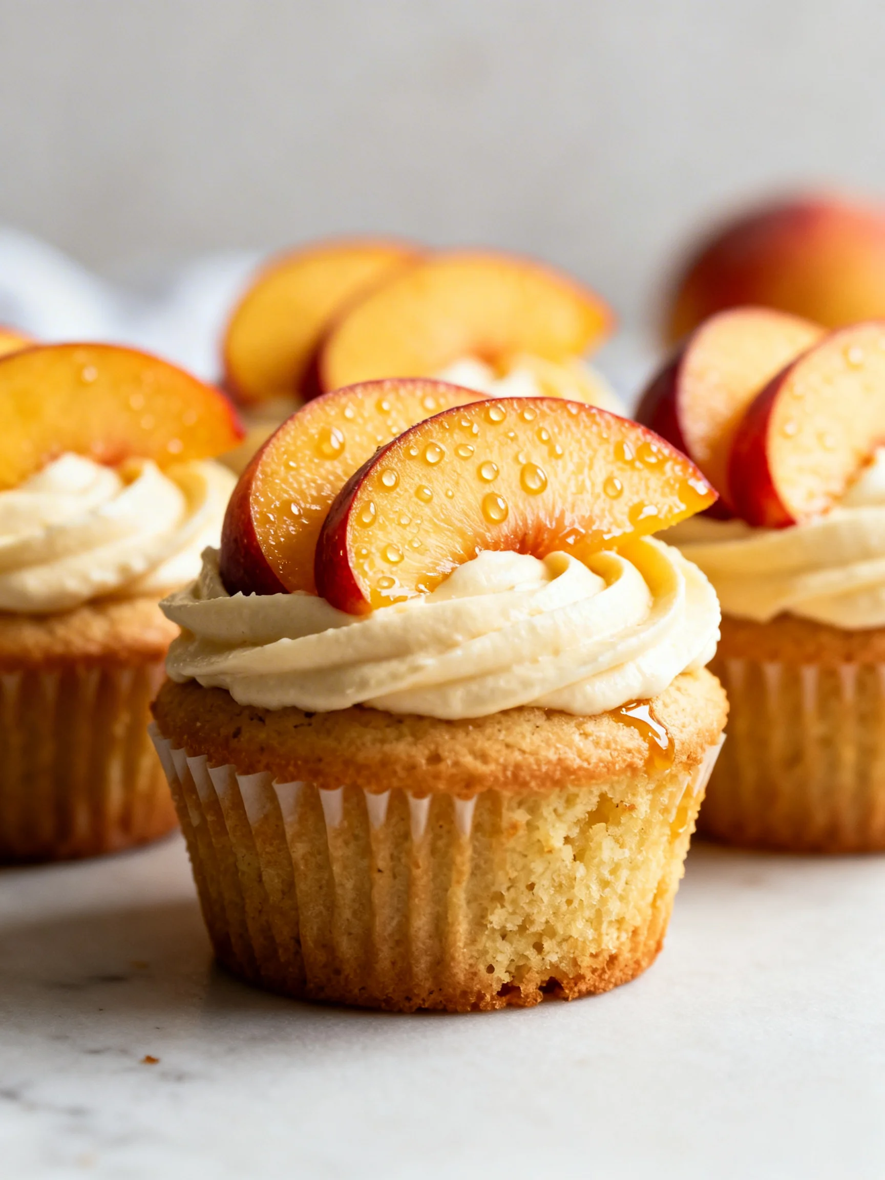 Let the cupcakes cool in the pan for 5 minutes before transferring them to a wire rack to cool completely. Once cool, garnish each with a fresh peach slice and a light drizzle of honey. This final touch adds a glossy, professional finish and reinforces the honey-peach flavor profile.