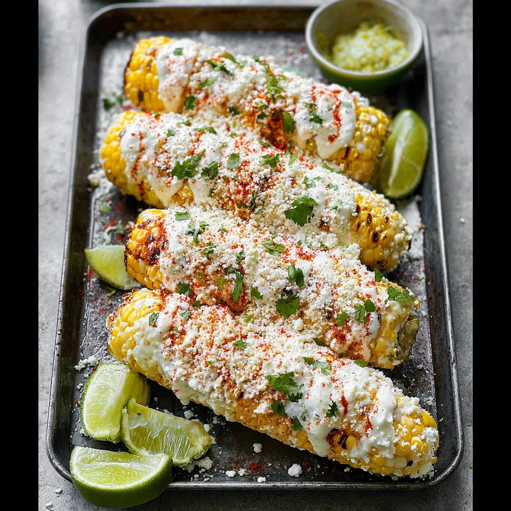 Transfer the finished Mexican Street Corn to a serving platter. Serve immediately with lime wedges on the side for squeezing and a sprinkle of fresh cilantro if desired. The contrast of the cool, creamy sauce, hot corn, and acidic lime is what defines this classic dish.