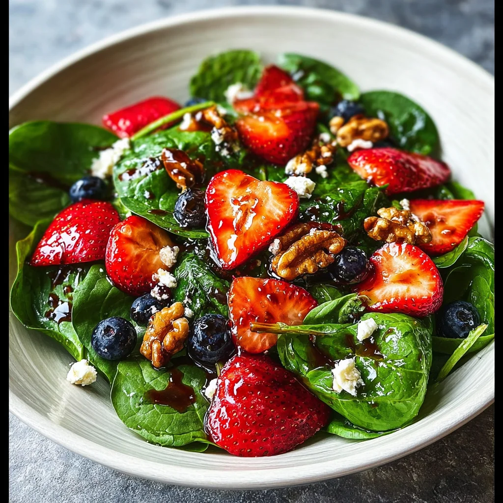 Context: This no-cook assembly makes this Vibrant Spinach Strawberry Salad about 50% faster to prepare than most cooked side dishes. Research shows that minimal preparation helps preserve the delicate nutrients in the fresh greens, making it a perfect, healthy option for busy weeknights or last-minute entertaining.